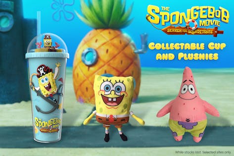 Get ready for an underwater adventure with The SpongeBob Movie: Search for SquarePants Collectable Cup and Plushies. These HOYTS exclusives are perfect for fans looking to add a splash of SpongeBob fun to their collection.