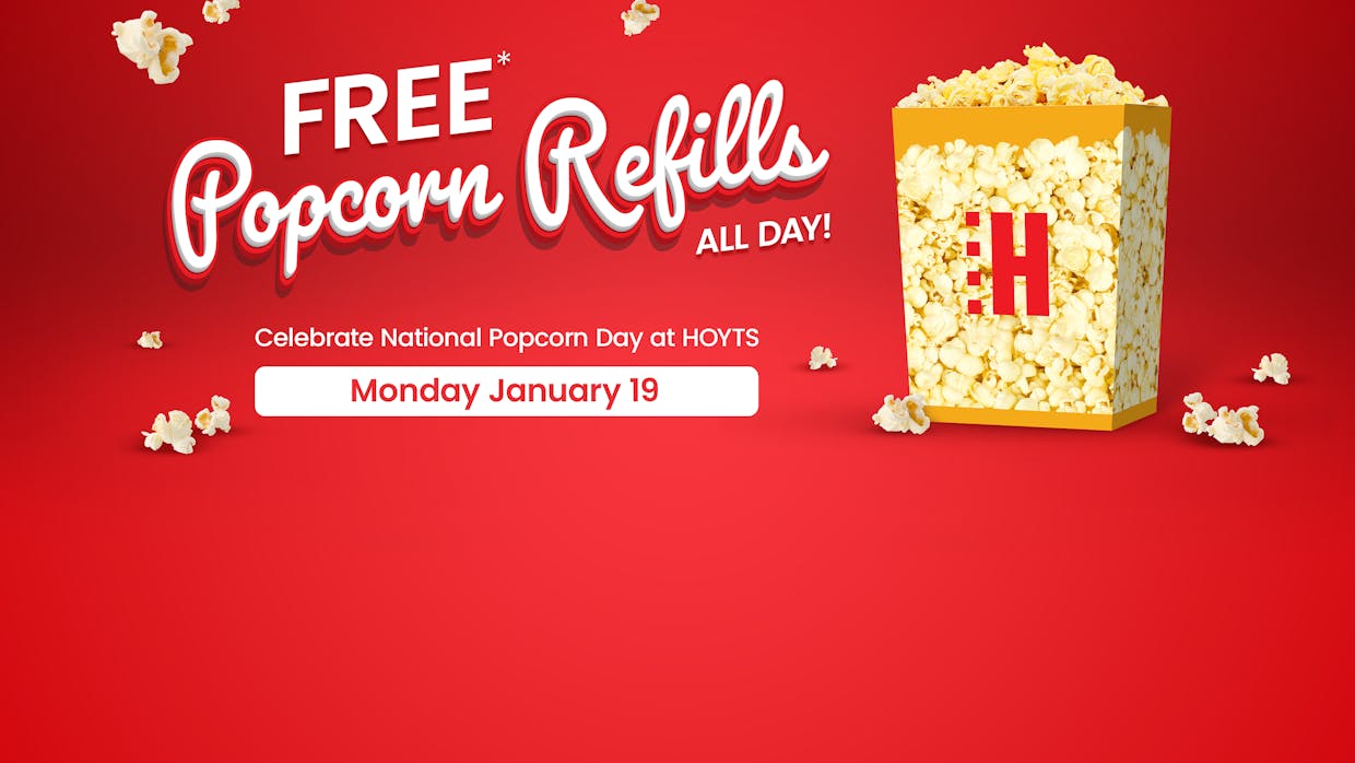 You can get FREE* popcorn refills when you purchase a popcorn of any size at HOYTS on Monday January 19.