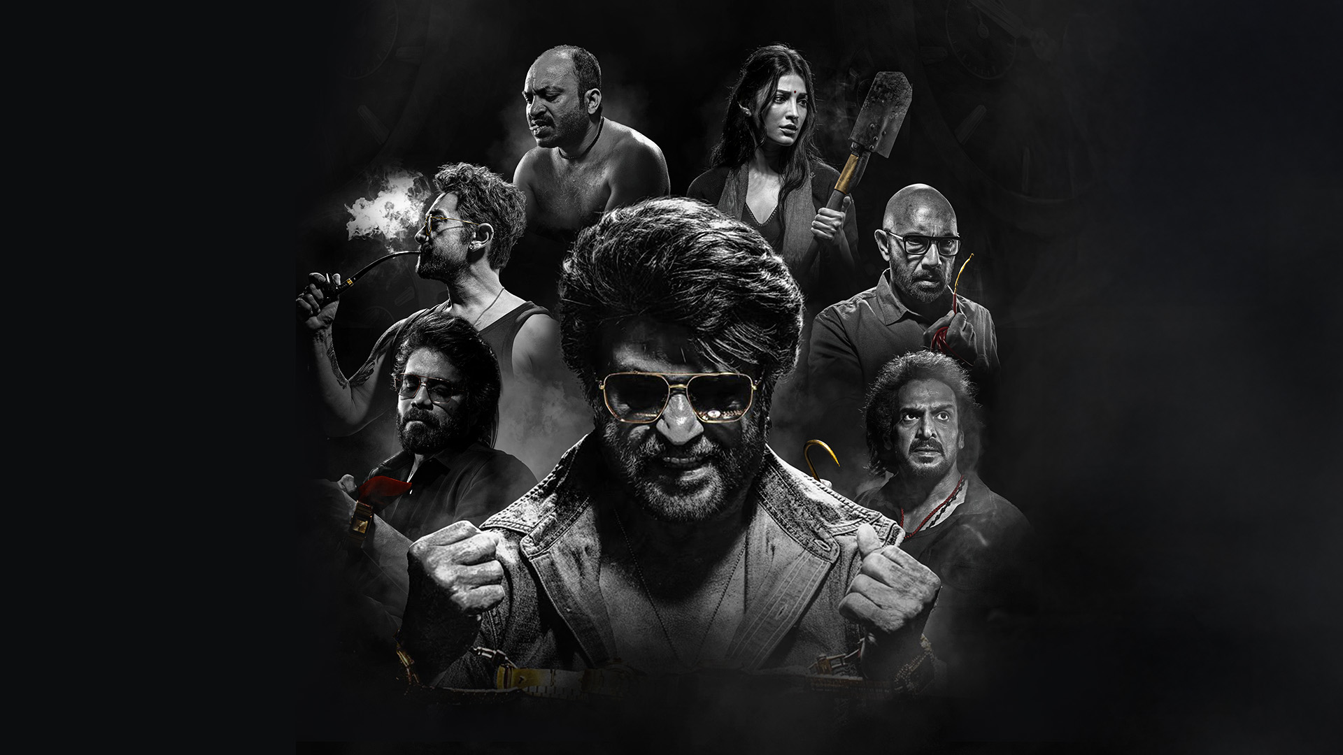 - Rajinikanth ., Nagarjuna Akkineni, Soubin Shahir, Sathyaraj ., Aamir Khan, Shruti Haasan, Upendra, Reba Monica John, Baburaj