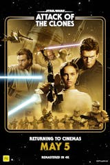 Ten years after initially meeting, Anakin Skywalker shares a forbidden romance with Padmé Amidala, while Obi-Wan investigates an assassination attempt on the senator and discovers a secret clone army crafted for the Jedi.