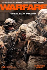 Written and directed by Iraq War veteran Ray Mendoza and Alex Garland (Civil War, 28 Days Later), Warfare embeds audiences with a platoon of American Navy SEALs on a surveillance mission gone wrong in insurgent territory. A visceral, boots-on-the-ground story of modern warfare and brotherhood, told like never before: in real time and based on the memory of the people who lived it.